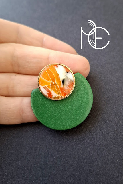 Lekkie kolczyki wiszące wykonane z wysokiej jakości glinki polimerowej z dodatkiem ozdobnych elementów metalowych. Bigle koliste, posrebrzane i nieuczulające. Wymiary kolczyków: długość całkowita: 5,2 cm, szerokość max. 1,3 cm. Wykonane w jedynym egzemplarzu.